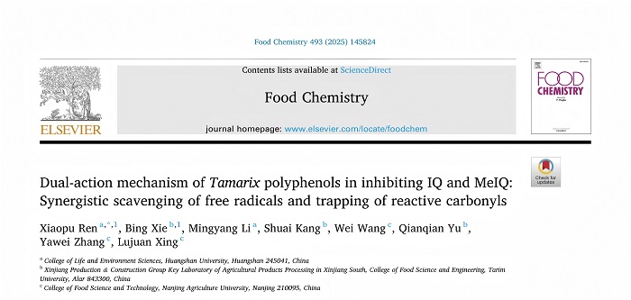 IF:9.8 / Associate Professor Xiaopu Ren: Dual-action mechanism of Tamarix polyphenols in inhibiting IQ and MeIQ: Synergistic scavenging of free radicals and trapping of reactive carbonyls